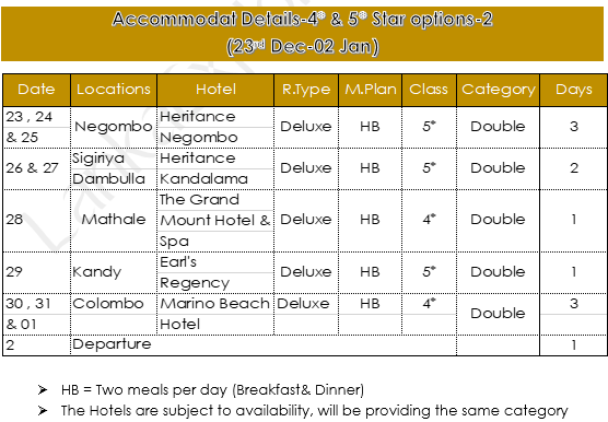 This is a half board (HB) package (Breakfast & Lunch) with Deluxe accommodations in 3*,4” & 5* Hotels.